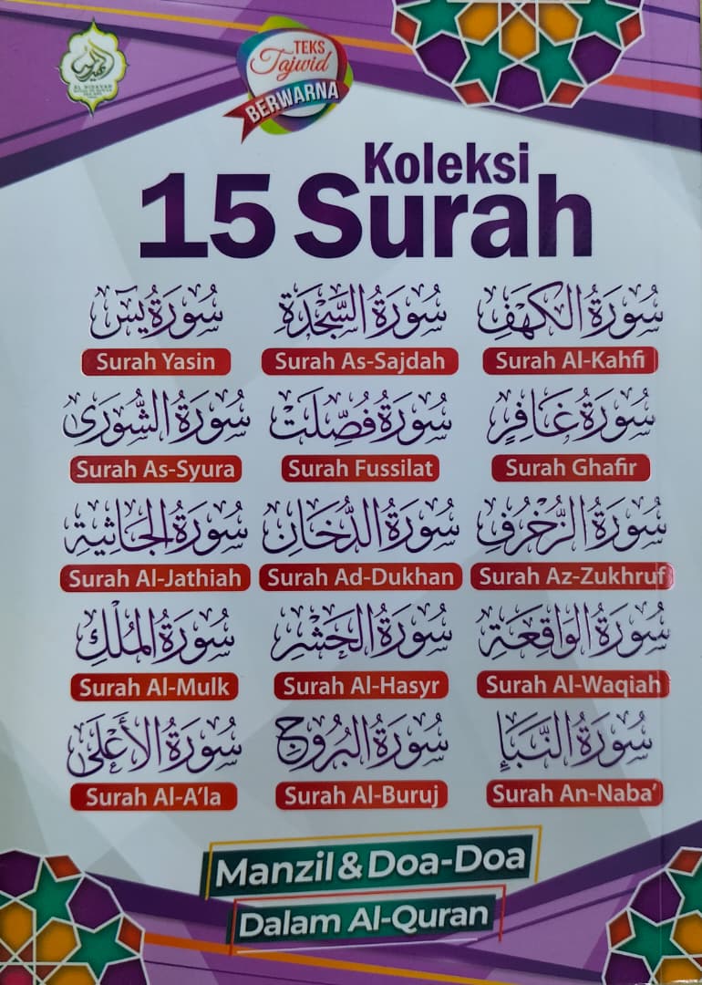 Koleksi 15 Surah Tajwid Berwarna Kecil (Size A6) (1 Bundle = 100 Copies)