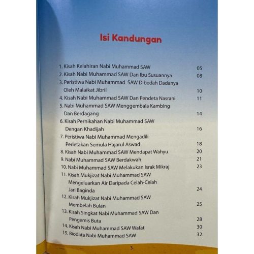 Buku ini memuatkan kisah kisah Nabi Muhammad dan mukjizatnya dari kelahiran baginda sehingga wafat. Banyak kisah menarik yang boleh kita dalami serta pelajari. Juga baik untuk penggunaan cerita untuk anak anak.