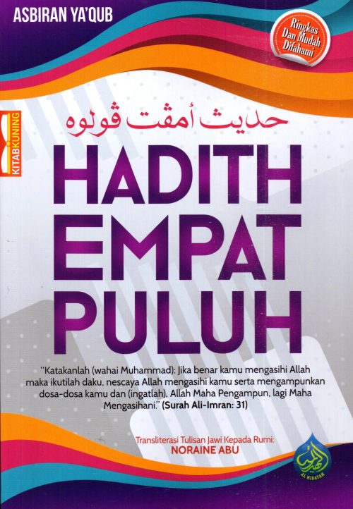 Apabila disebut sahaja Hadith Empat Puluh atau Hadith Arba’in, sudah tentu kita sudah sedia maklum apa yang sedang dibincangkan. Hadith Empat Puluh merupakan kumpulan hadith yang merangkumkan perkara-perkara bersangkulan dengan akidah,tauhid, ibadah, cara hidup dan isu yang bersangkutan dengan kehidupan. Walaupun namanya dikenali sebagai Hadith Empat Puluh di dalam terkandung 42 hadis yang amat berguna untuk kita dalam menjalani kehidupan yang lebih berjaya dan bahagia di dunia dan akirat. Lebih menarik lagi di dalam buku setiap hadith itu telah diberikan tema tentang apa dibicarakan. Ini memudahkan lagi para pembaca untuk merujuk dan mengigati hadith tersebut.