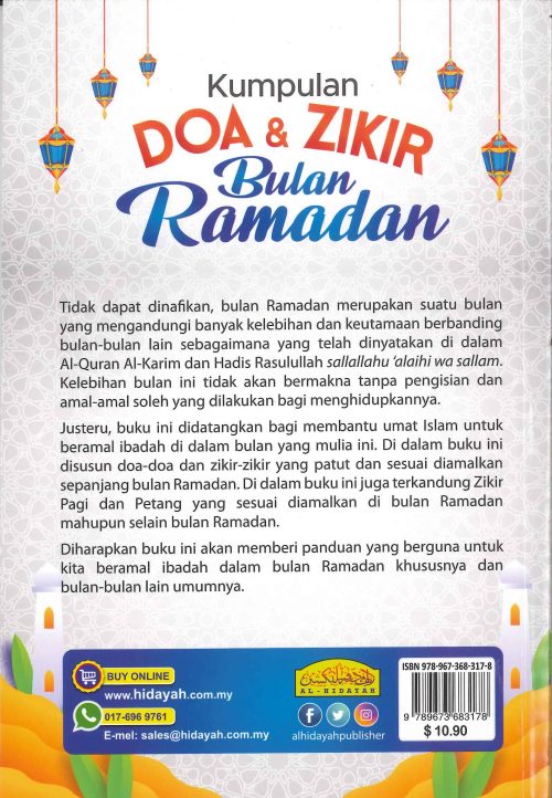 Diharapkan buku ini akan memberi panduan yang berguna untuk kita beramal ibadah dalam bulan Ramadan khususnya dan bulan-bulan lain umumnya.