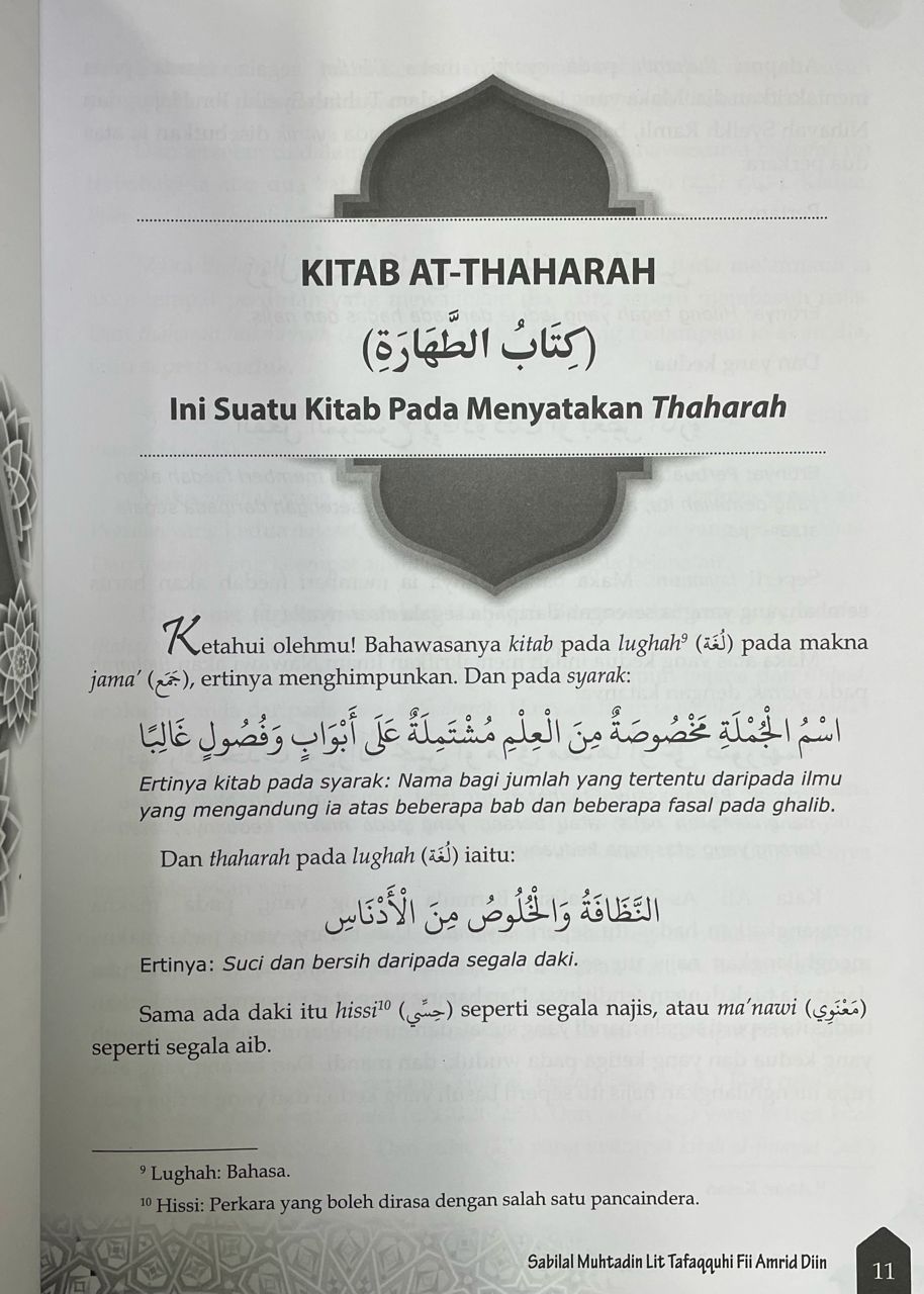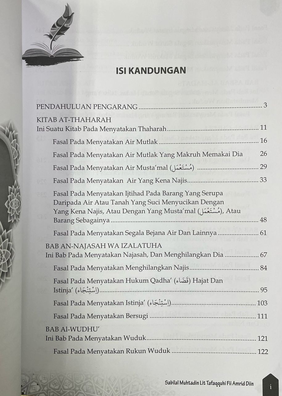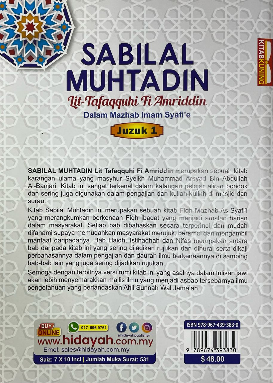 Kitab Sabilal Muhtadin ini merupakan sebuah kitab Fiqh Mazhab As-Syafi’i yang merangkumkan berkenaan Fiqh Ibadat yang menjadi amalan harian dalam masyarakat. Setiap bab dibahaskan secara terperinci dan mudah difahami supaya memudahkan masyarakat merujuk, beramal dan mengambil manfaat daripadanya. Bab Haidh, Istihadhah dan Nifas merupakan antara bab daripada kitab ini yang sering dijadikan rujukan dan dihurai serta dikaji perbahasannya dalam pengajian dan daurah ilmu berkenaannya di samping bab-bab lain yang juga sering dijadikan rujukan.
